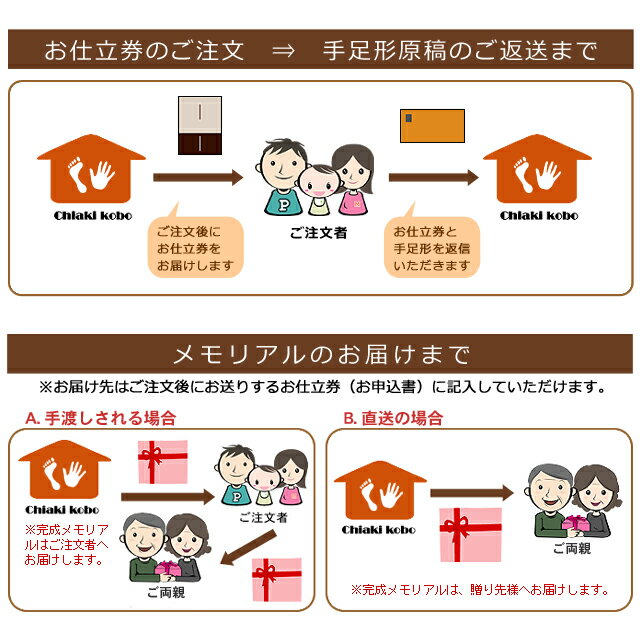 お仕立券セット内容 お申込用紙/返信用後納封筒/カタログ/手足形をとる専用インクキット/手足形のとり方説明書 お写真について お写真は、完成メモリアルがお手元に届き次第、ご自宅にて飾っていただけます。