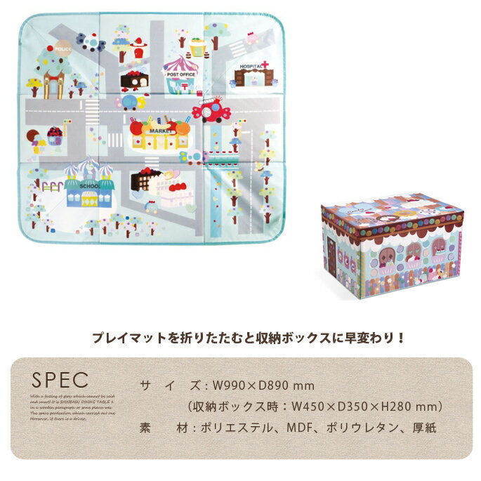 出産祝い、入園祝い、入学祝い、誕生日、クリスマス等のギフト・プレゼントにおすすめです! サイズ W990×D890(収納ボックス時:W450W×D350×H280)mm 材質 ポリエステル、MDF、ポリウレタン、厚紙 納期 5日から10日程度 その他 プレイマットを畳むだけで、収納ボックスに早変わり、梱包方法 : PVCバッグ 送料 800円 ※一部地域を除く