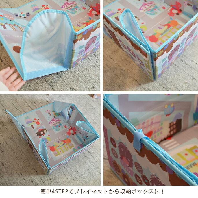 遊んだ後はプレイマットを畳むだけで、おもちゃをギュッと集めてしまえる収納ボックスに早変わり。